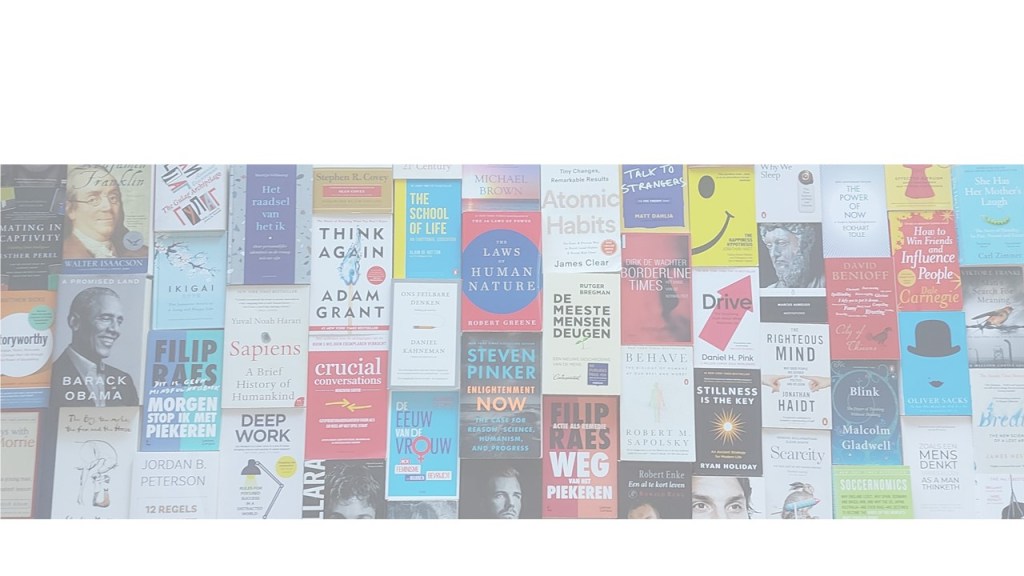 Toen ik jonger was las ik nooit boeken, hoogstens wat strips van Jommeke of FC De Kampioenen. In het middelbaar liet ik zelfs mijn moeder het boek van een boekbespreking voor mij lezen. Het is pas in de laatste jaren van de universiteit dat ik het lezen van boeken leuk en zinvol begon te vinden. Ik las sportbiografieën en rolde door mijn fascinatie voor ‘efficiënt dingen leren en onthouden’ in boeken met een psycho- en neurologische ondertoon. Zo was de trein vertrokken om mijn kennis uit te kunnen breiden, en door mijn brede interesse in allerlei onderwerpen en economisch-wetenschappelijke achtergrond stootte ik snel op een eindeloos gamma aan boeken om te lezen. Een forse nadruk op non-fictie met een rode draad die steeds terug leek te vallen op zelfontwikkeling en zelfbewustzijn. Die focus lag de eerste jaren zeer sterk op het individu – hoe kan ik de beste versie van mezelf zijn – en die schiftte dan doorheen de jaren ook wat meer naar ‘de gemeenschap’ of hoe we dingen kunnen inrichten om zo veel mogelijk mensen een welvarend en betekenisvol leven te kunnen geven.